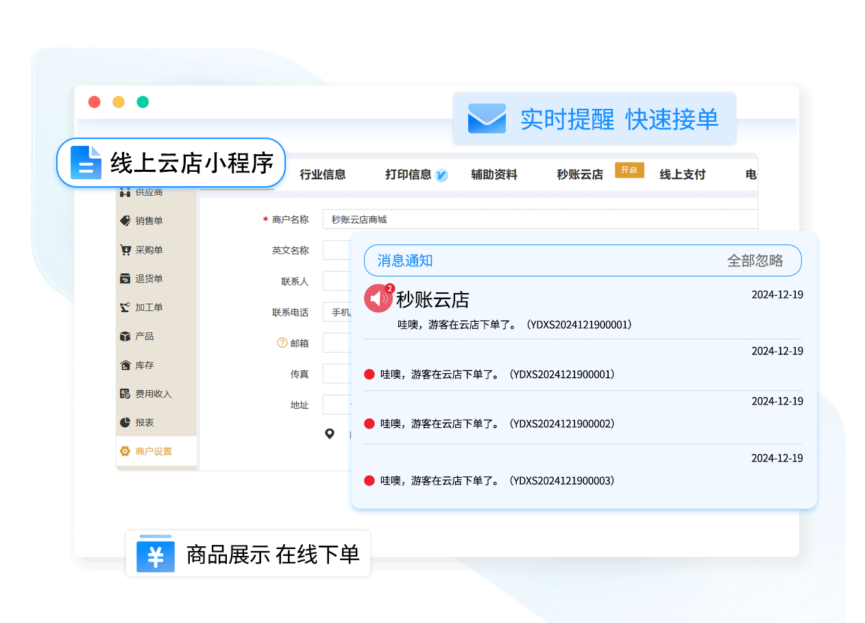 支持线上支付,系统生成收款单电子对账,方便客户与商家之间查账、对账,大大节省时间,也不用担心出现糊涂账。