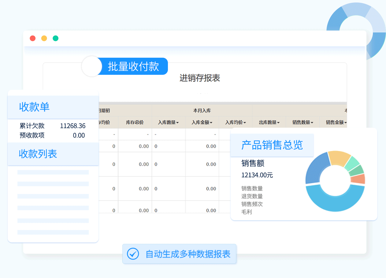 系统自动记录每一笔交易,并自动生成销售、采购流水、净利润、客户对账等统计报表,再也不用熬夜做账。