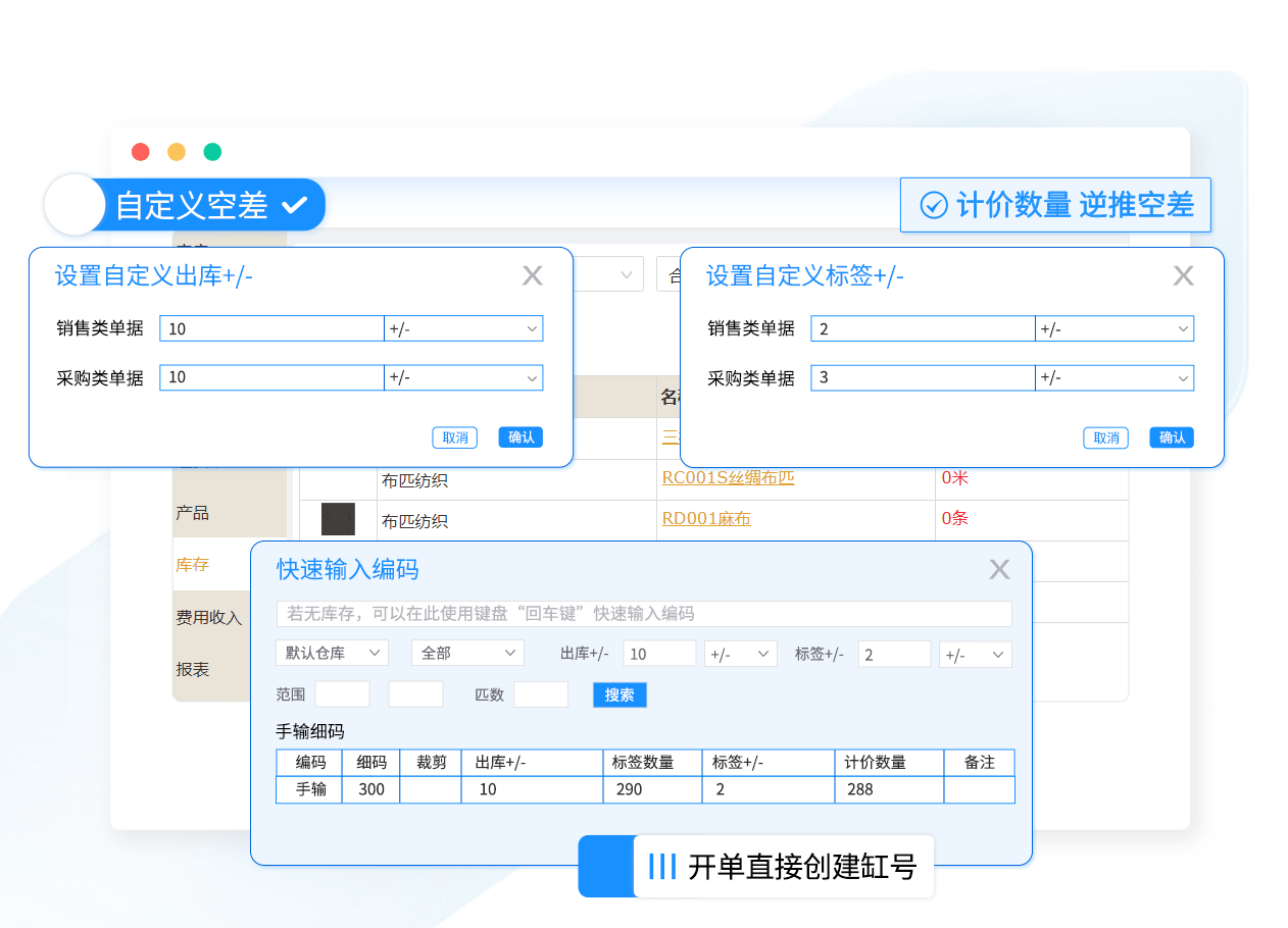 布匹种类多,规格色号杂,一个款式有多种颜色,开单慢易出错
