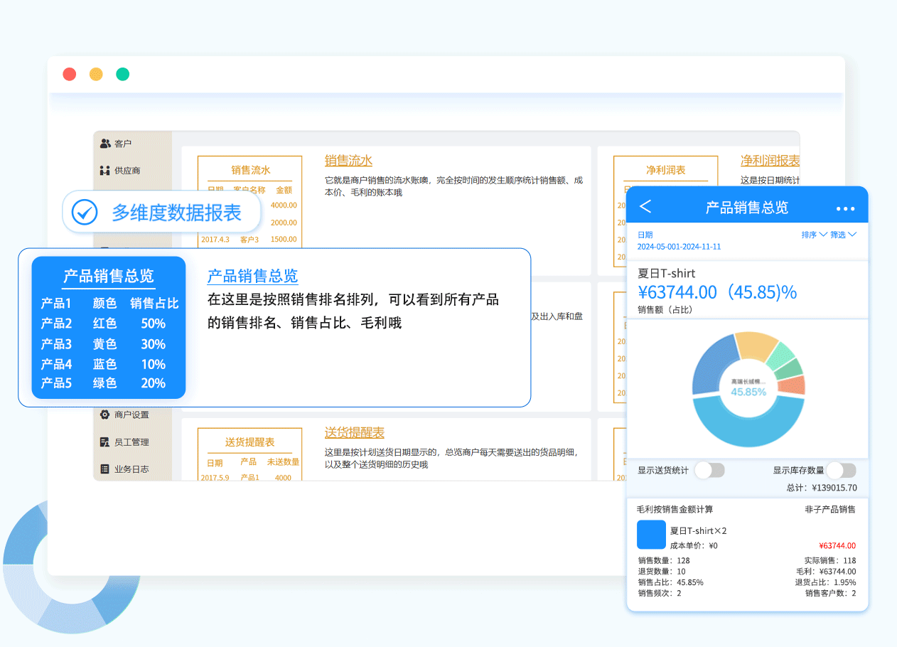 自动统计账目数据和流水,生成20多种业务报表,经营决策更清晰