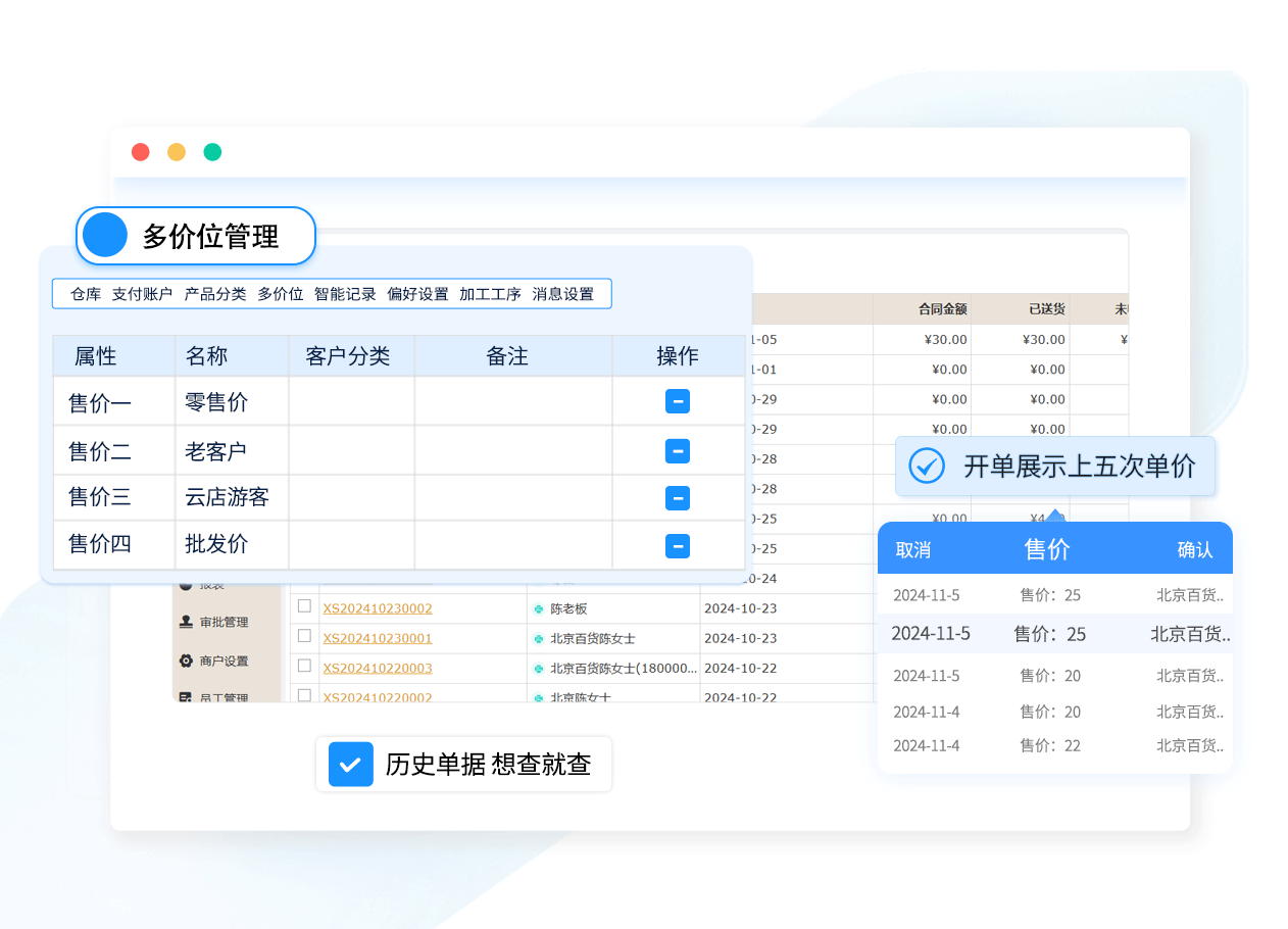 采购单、销售单、加工单、对账单,海量单据云存储,随时轻松查单